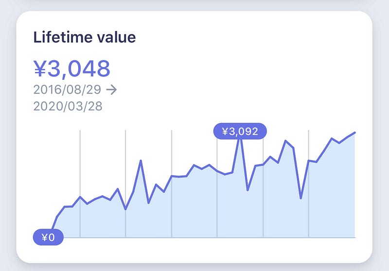 The key is that the lifetime value(LTV) keeps increasing: