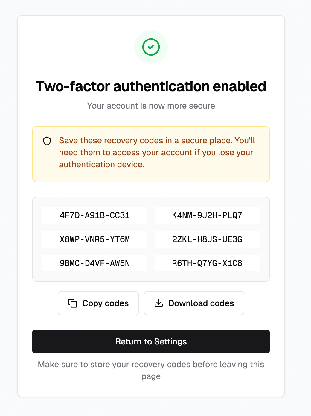 const backupCodes = generateBackupCodes();