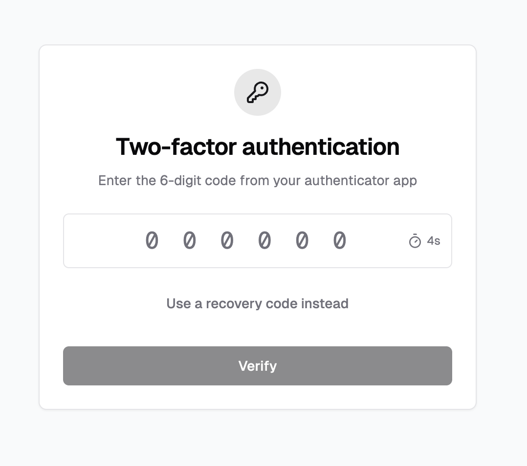 To implement UIs for setting up 2FA, I used v0 to get some inspiration. You can view my v0.dev mocks here:
