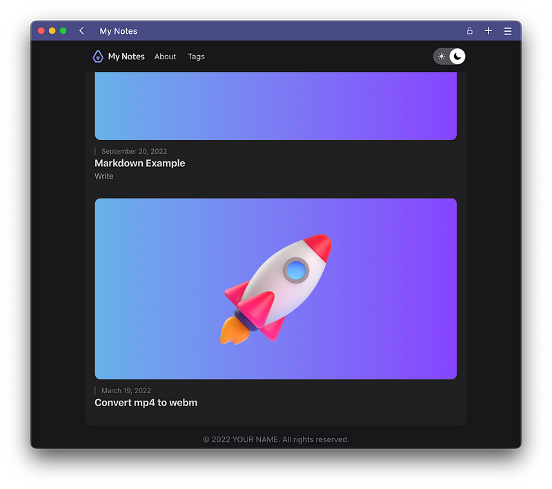 If you don’t see tags, please try to re-run live-export. Now, it’s ready to write your blog posts. You can change the navbar logo, title, colors, and everything as you like. Enjoy!
