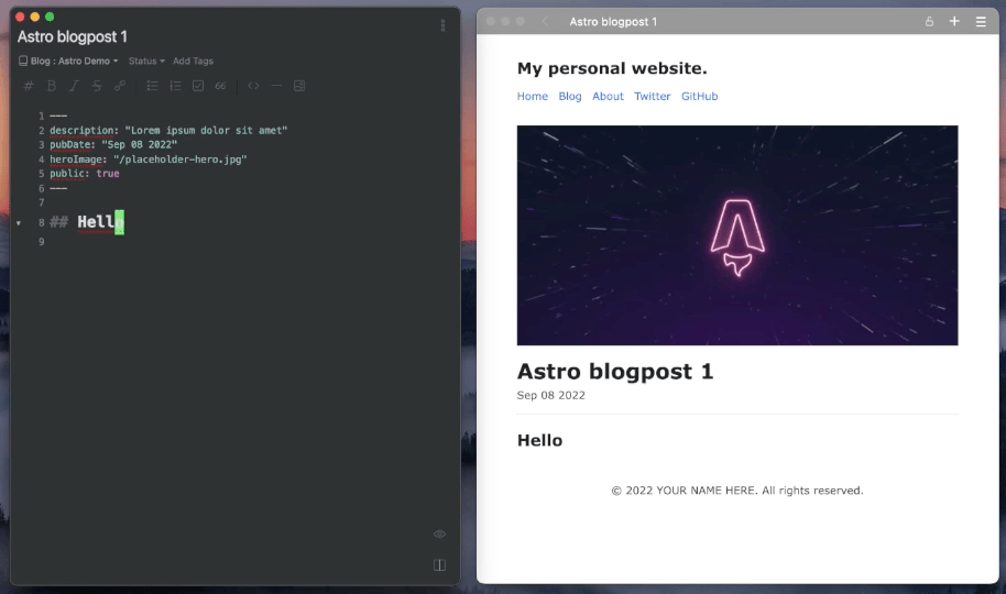 Pretty neat. Well, let me give you a quick demo. This website is built with Astro and its articles are written in Inkdrop: