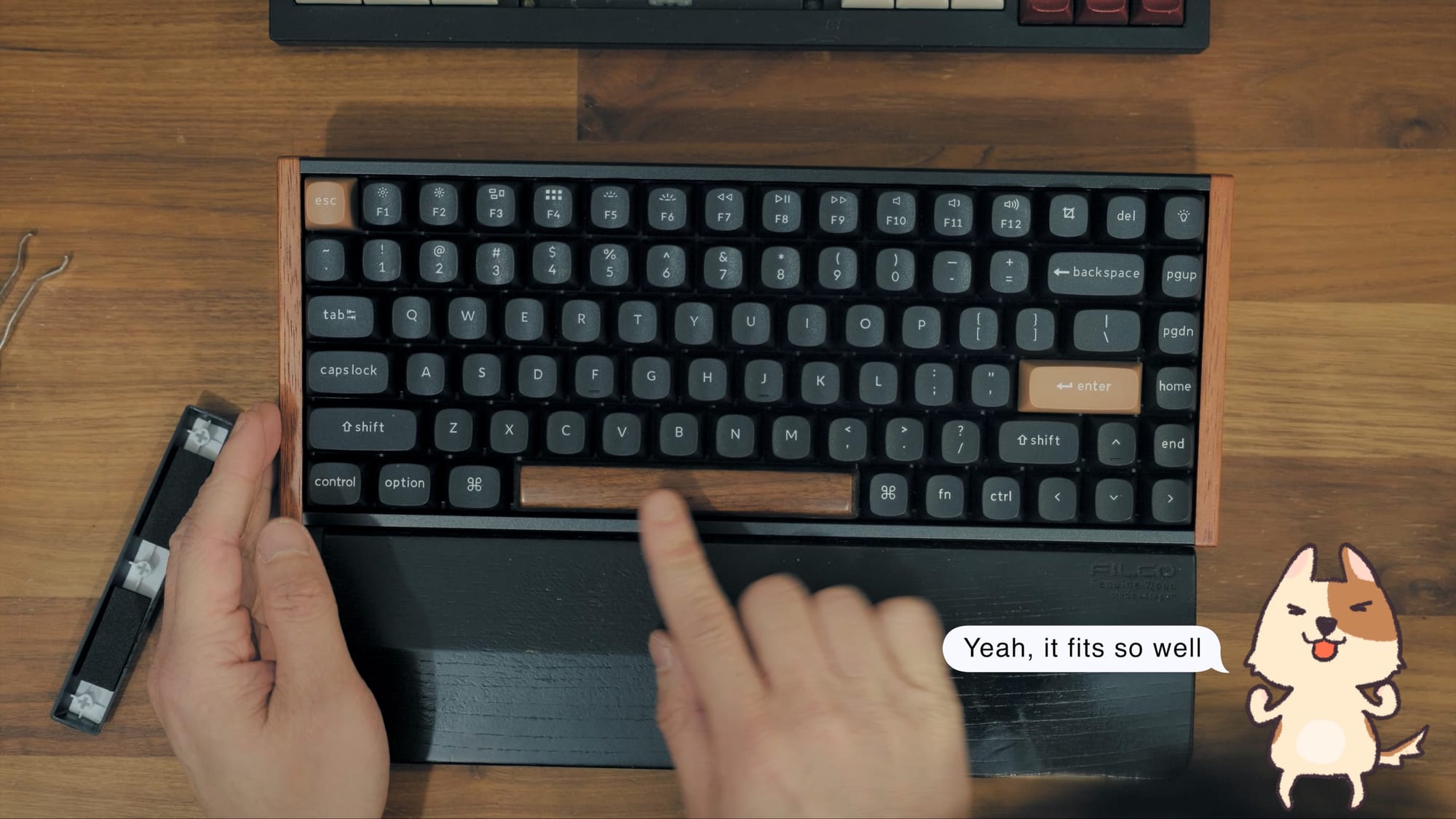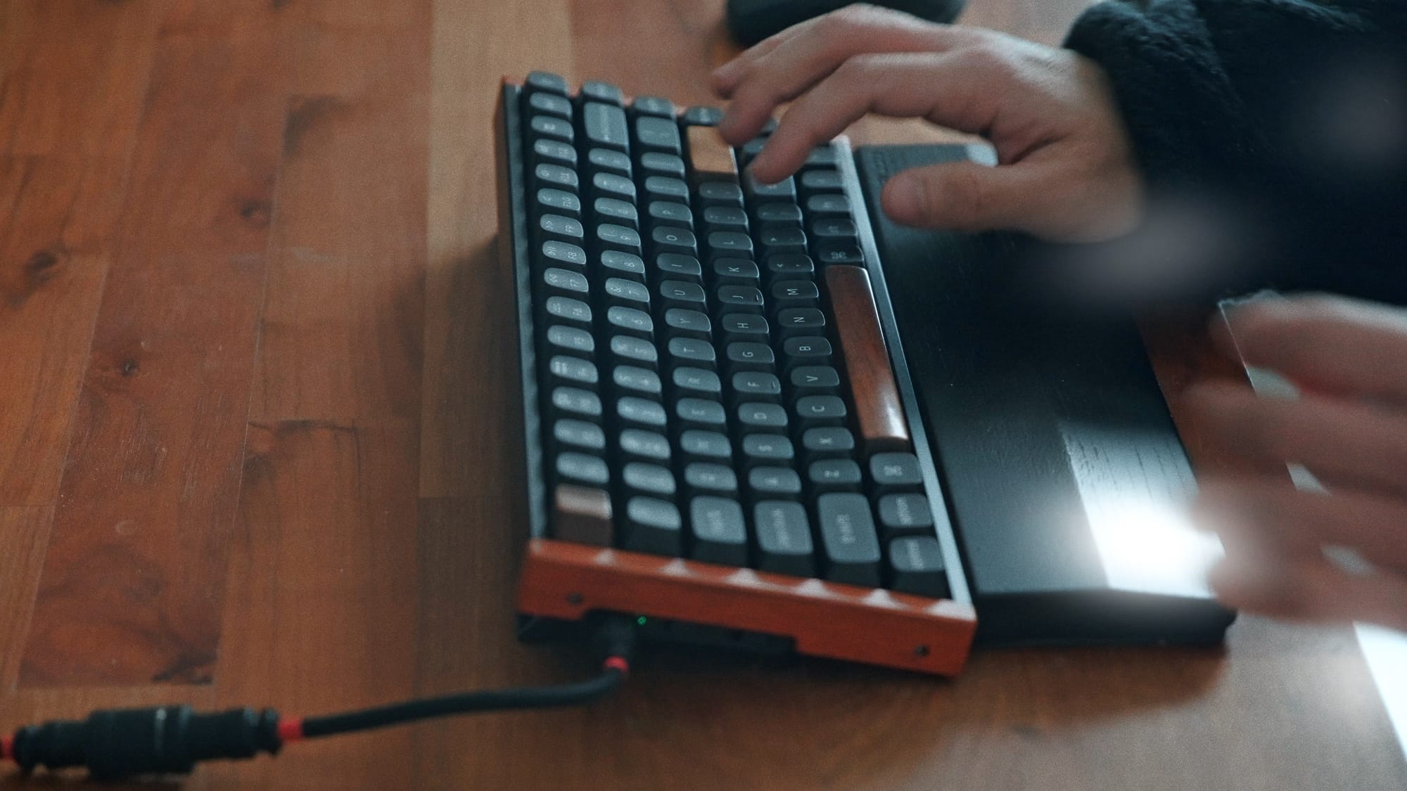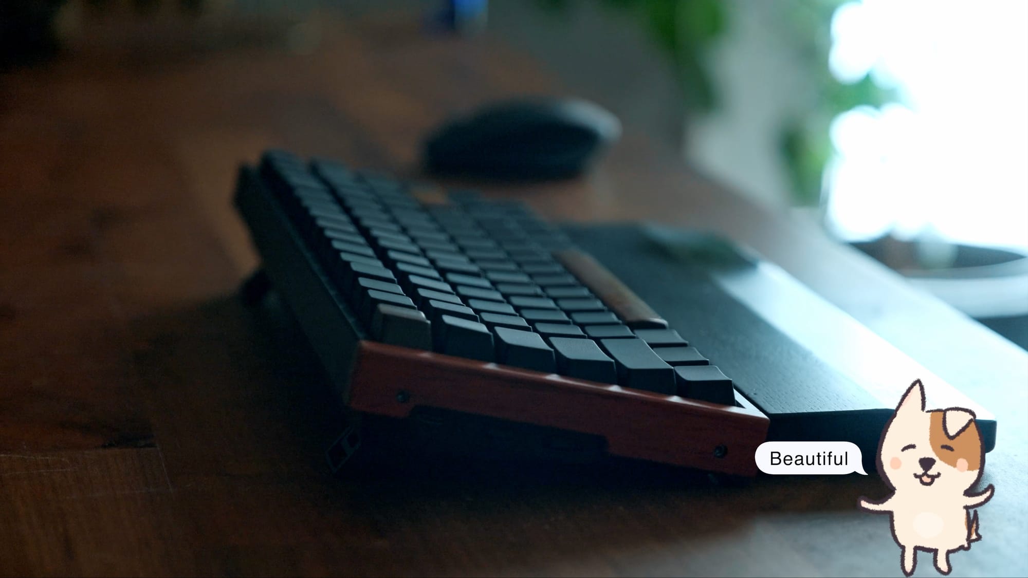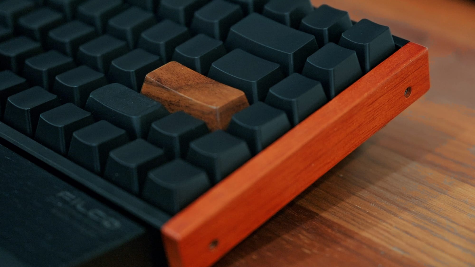 The design looks already beautiful out of the box. I really love the wooden side frame. It comes with brown keycaps for ESC and return keys, but they are plastic, so they felt a bit off. So, I'd like to replace them with my wooden keycaps.