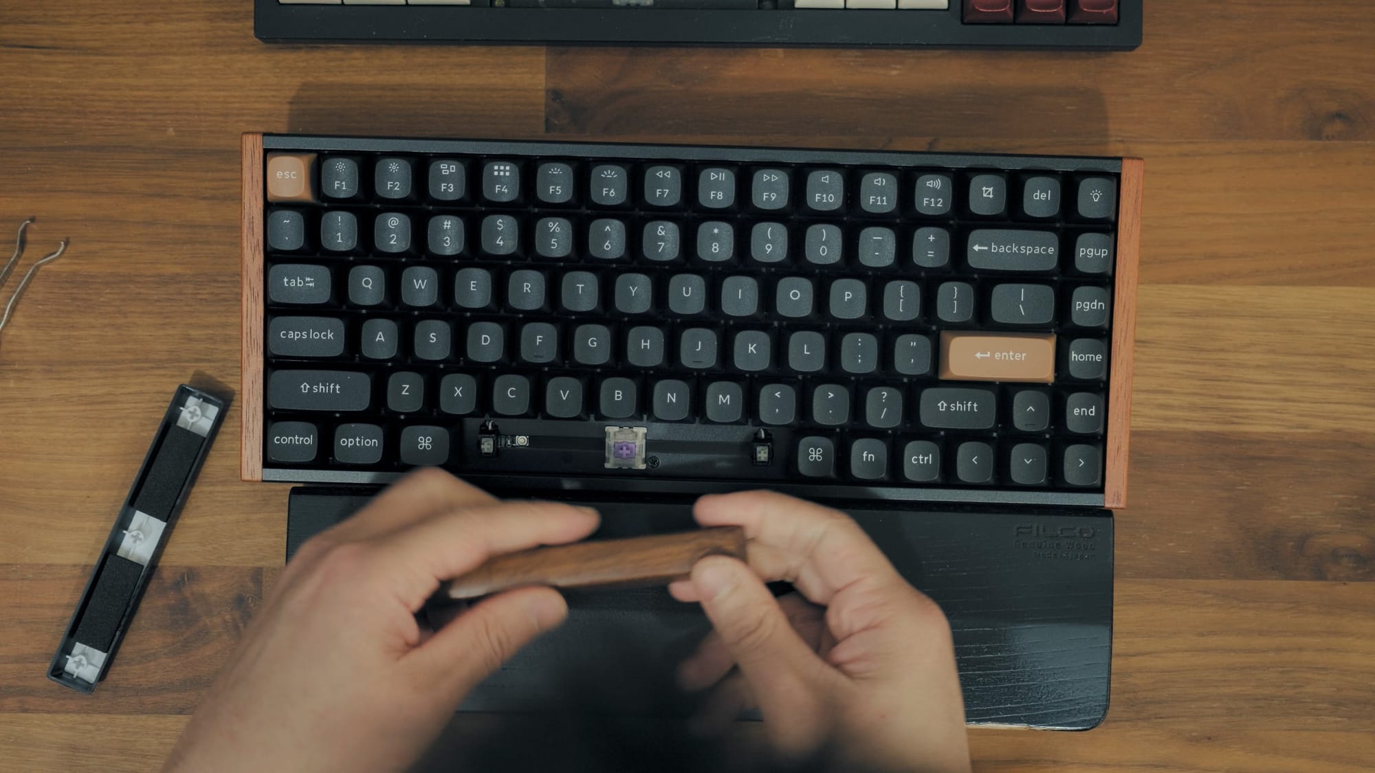 I used a keycap removal tool bundled with the package. These wooden keycaps are from Etsy, which fit with the keyboard, fortunately: