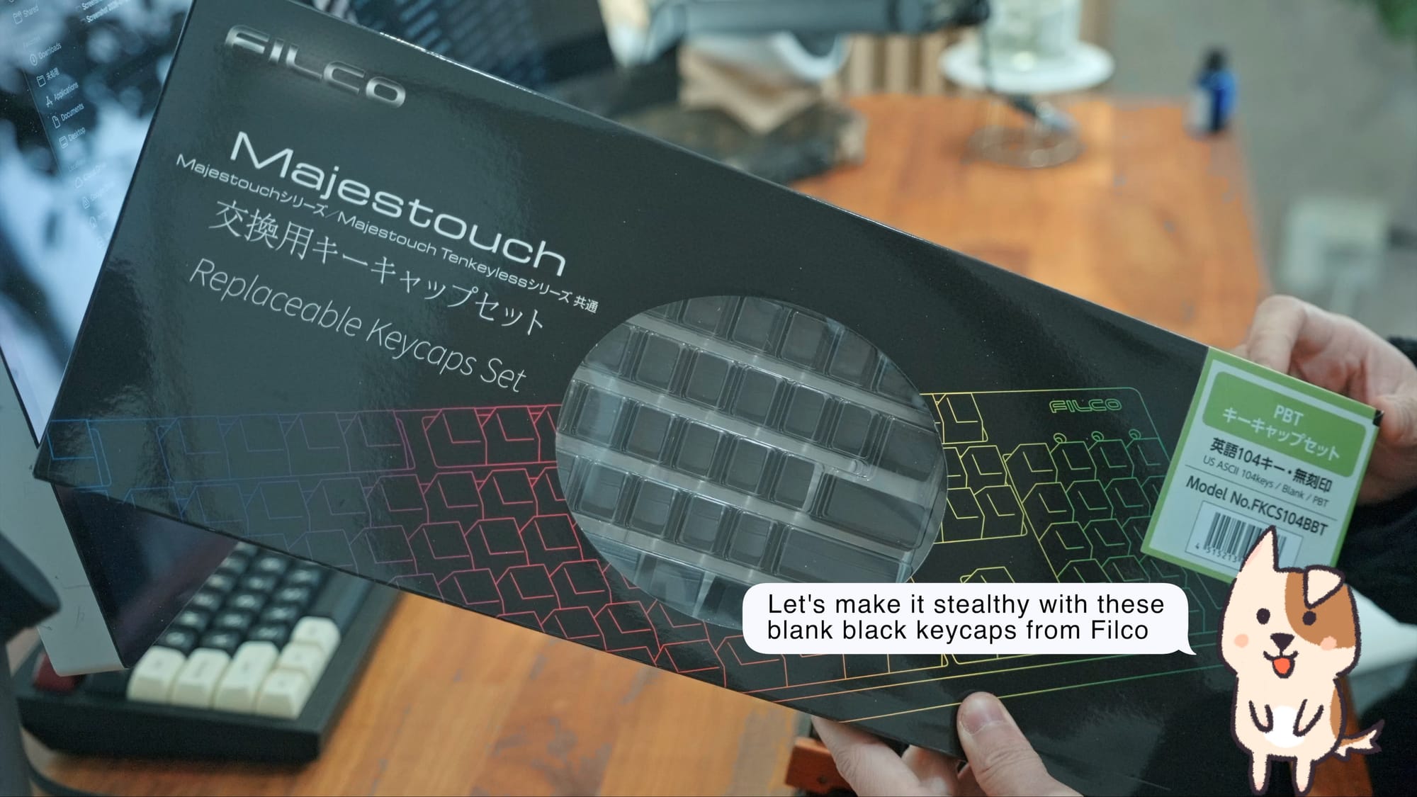 I've been interested in trying blank keycaps because it's been unnecessary to look at keys when coding for years for me, except for some special keys like volume up/down. I really liked the feeling of the default keycaps, which are made of PBT. So, I searched for blank PBT keycaps that I can buy from Japan, and found this one:
